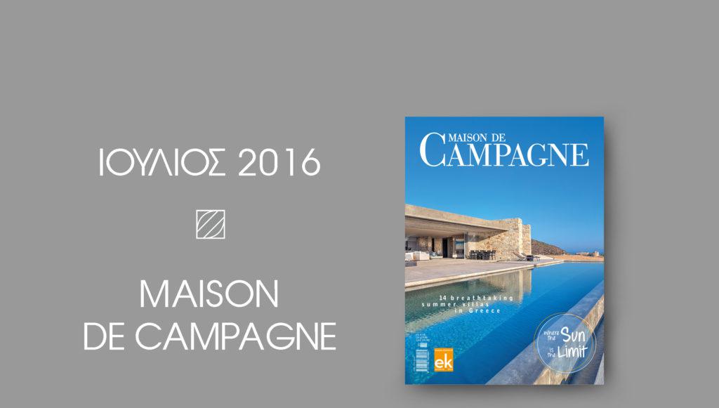 Στη νέα έκδοση του Maison de Campagne, Ιούλιος 2016, μπορείτε να δείτε το έργο μας “Κατοικία στη Μύκονο”.
