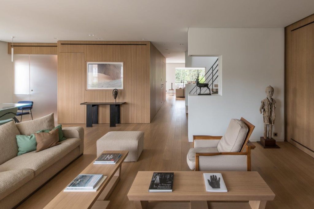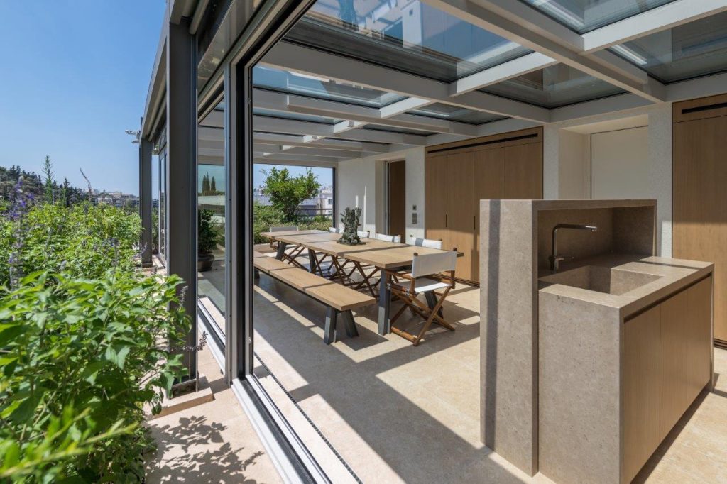 Το σπίτι βρίσκεται στον 3ο και 4ο όροφο ενός κτιρίου με έντονη τη σφραγίδα της επιρροής του κινήματος Bauhaus. Μάλιστα η επιρροή αυτή ήταν που σε πολλές περιπτώσεις έγινε αφετηρία και σημείο αναφοράς για τον Θοδωρή Ζουμπουλάκη. Δημιούργησε ένα λειτουργικό και σημερινό σπίτι, ακολουθώντας τις αξίες και τους κανόνες της βιωσιμότητας. Γι αυτό άλλωστε, η επιλογή των υλικών και των φινιρισμάτων έγινε με κριτήριο τη διατήρηση της αισθητικής συνέπειας με το αυστηρό και λιτό ύφος του κτιρίου.