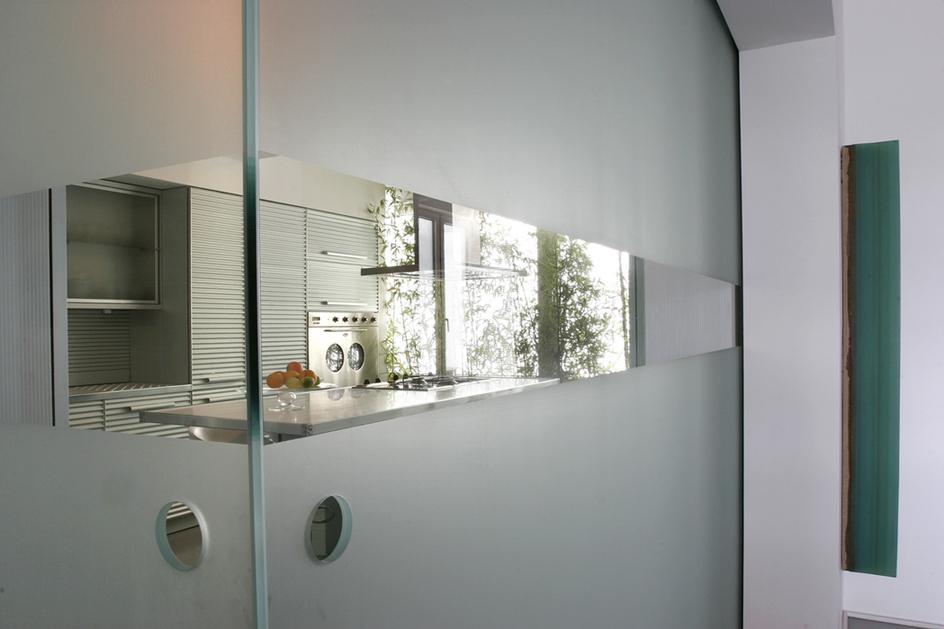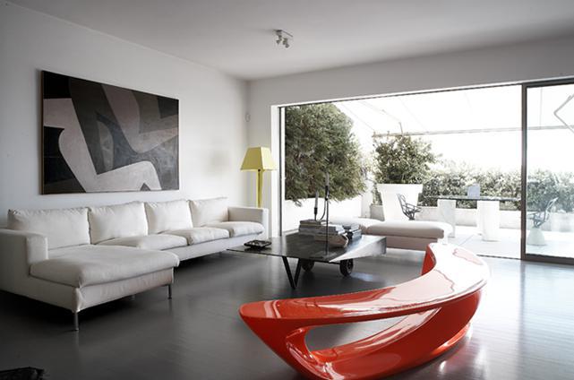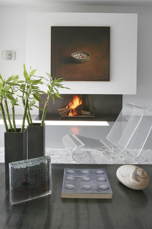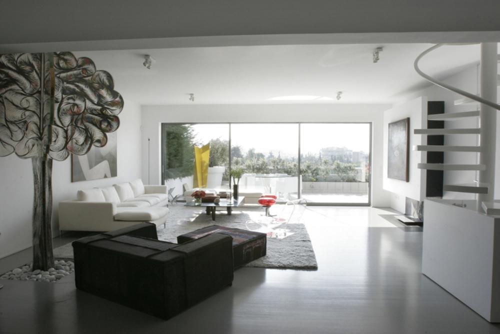 Η ριζική ανακαίνιση οδήγησε σε ενοποίηση χώρων μετά από το γκρέμισμα πολλών διαχωριστικών τοίχων, την αφαίρεση όλων των περιττών στοιχείων και τη γεωμετρική τακτοποίηση των όσων παρέμειναν. Τα ανοίγματα μεγάλωσαν και εντάχθηκαν σε νοητούς άξονες. Οι κάτασπροι τοίχοι, τα γκρι ξύλινα δάπεδα και κουφώματα, οι μαύρες ακατέργαστες επιφάνειες του σιδήρου, το φυσικό αλουμίνιο, τα διάφορα γυάλινα στοιχεία είναι τα υλικά που κυριαρχούν.