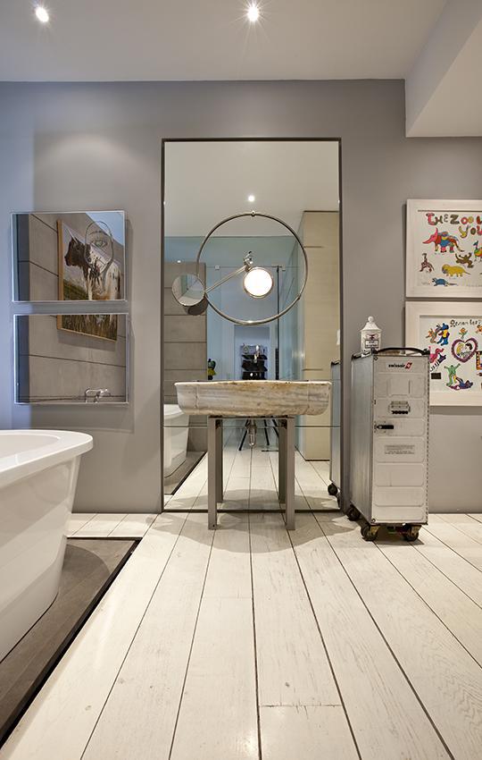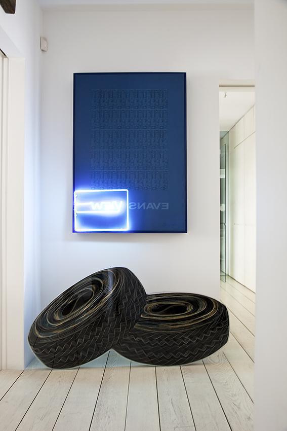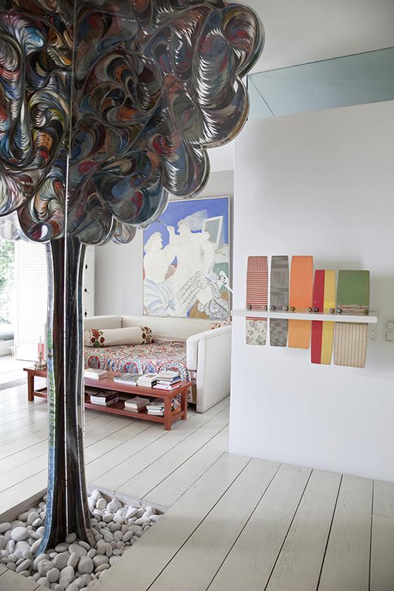 Το διαμέρισμα βρίσκεται σε μια πολυκατοικία του 1950 στο κέντρο της Αθήνας, επανασχεδιάστηκε σύμφωνα με τις επιταγές της σύγχρονης αρχιτεκτονικής και τεχνολογίας. Στόχος ήταν να δημιουργηθούν ανοιχτοί χώροι. Οι εσωτερικές συρόμενες πόρτες τονίζουν την αίσθηση του ενιαίου χώρου. Το δάπεδο αποτελείται από φαρδιές, λευκές, ξύλινες τάβλες δίνοντας συνέχεια στους χώρους.
