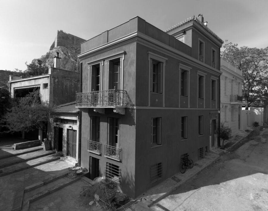 Οι περιμετρικοί τοίχοι του κτιρίου στην Πλάκα ενισχύθηκαν εσωτερικά με μεταλλικά υποστυλώματα (επάνω στα οποία στηρίχθηκαν και οι νέες μεταλλικές πλάκες) και με μεταξύ τους πλήρωση με gunite. Η μία πλευρά της μεταλλικής ενίσχυσης παρέμεινε ορατή στους χώρους. Το γεγονός ότι στο παλιό κέλυφος δεν υπήρχε κανένα ορθογώνιο σύστημα αναφοράς, αποτέλεσε πρόκληση για την αρχιτεκτονική λύση. Το κεντρικό αυστηρά παραλληλόγραμμο σχήμα και στα 4 επίπεδα του κτιρίου ανακαινίσθηκε με πολύ σύγχρονα υλικά, ενώ οι λοξές λωρίδες που παρέμειναν κατασκευάστηκαν με παραδοσιακά και “σκληρά” υλικά, εντασσόμενες έτσι στο παραδοσιακό λίθινο κέλυφος.