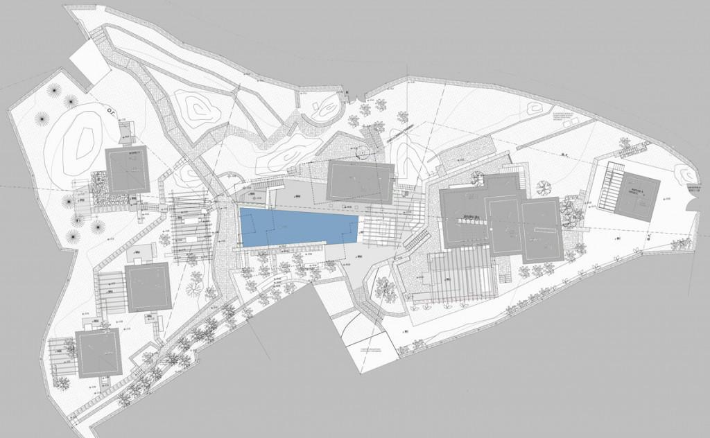 Έμφαση δόθηκε όχι μόνο στα κτίρια, αλλά και στους ελεύθερους χώρους και στα περάσματα που δημιουργούνται ανάμεσα από αυτά, στον προσανατολισμό, το φως, τη θέα και τον άξονα της Δύσης. Η διαρρύθμιση των χώρων είναι ευέλικτη και ακολουθεί την αρχιτεκτονική των κτισμάτων, υποστηρίζοντας συγχρόνως μια αίσθηση “αόρατης” πολυτέλειας, άνεσης και απλότητας. Η διαρρύθμιση, τα υλικά και τα χρώματα επιλέχθηκαν για να διευκολύνουν τη μετάβαση από τους εσωτερικούς στους εξωτερικούς χώρους, ενοποιώντας τους.