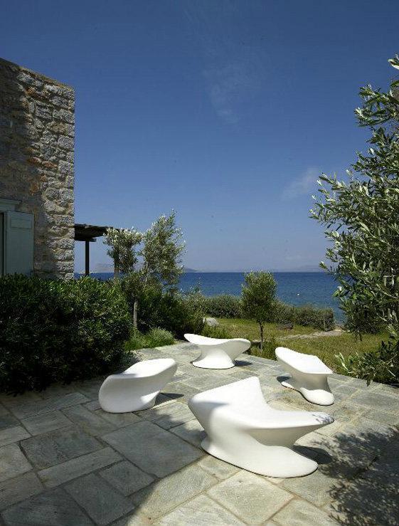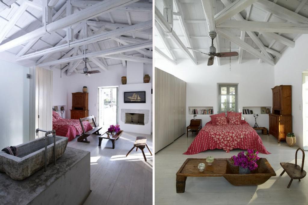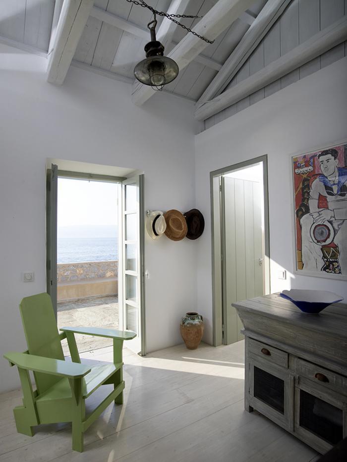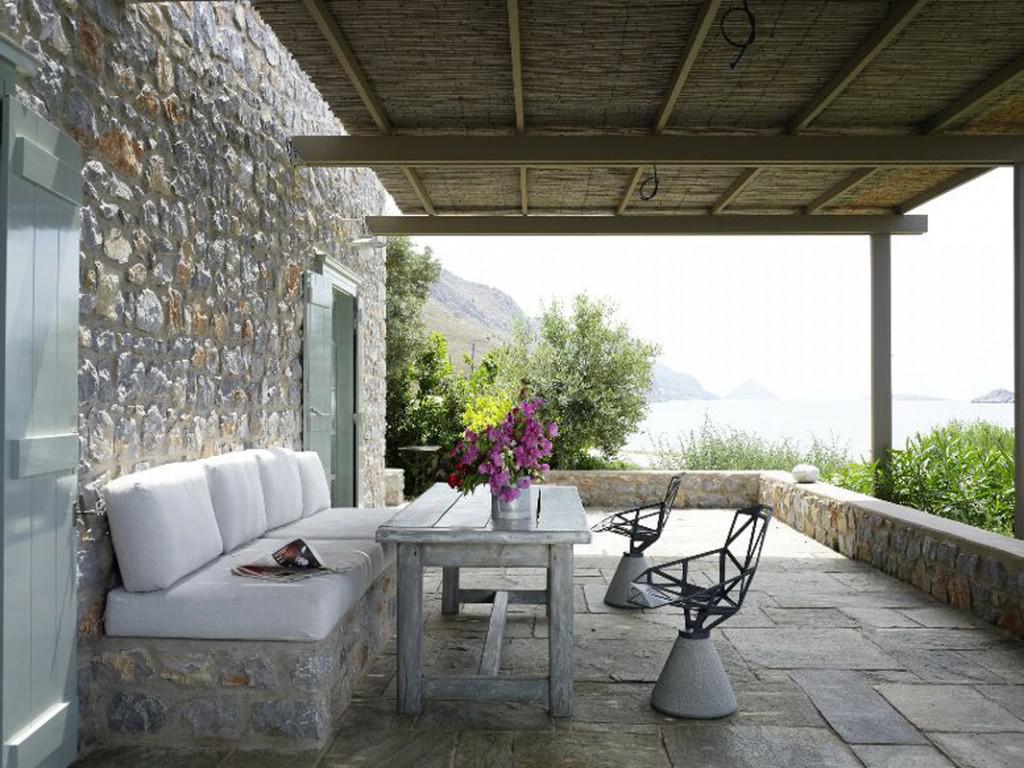 Composition in stone and plaster, with elements of local architecture adapted to modern culture. Finishes of exposed concrete, cement, rusty iron and naturally timeworn wood dominate in the interior. The faucets are bespoke, while the basins come from the private collection of the owners.